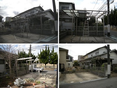 はじめに屋根のアクリル板を取外し、枠・支柱の順に解体しました。